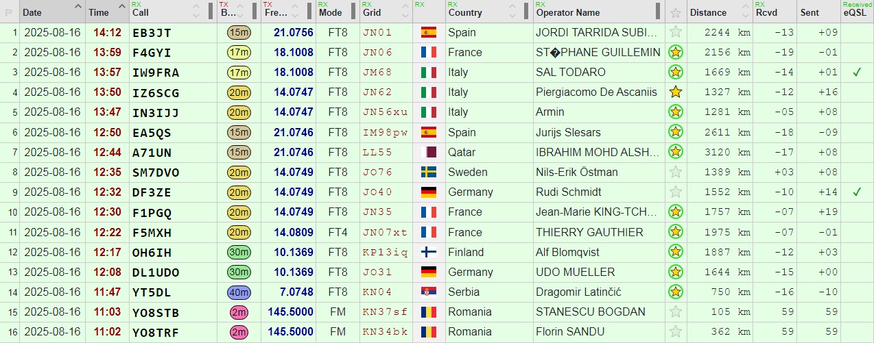 I also managed to make 2 contacts on VHF with hams from Iasi, Romania, using a HT with a 5 element log-periodic antenna.