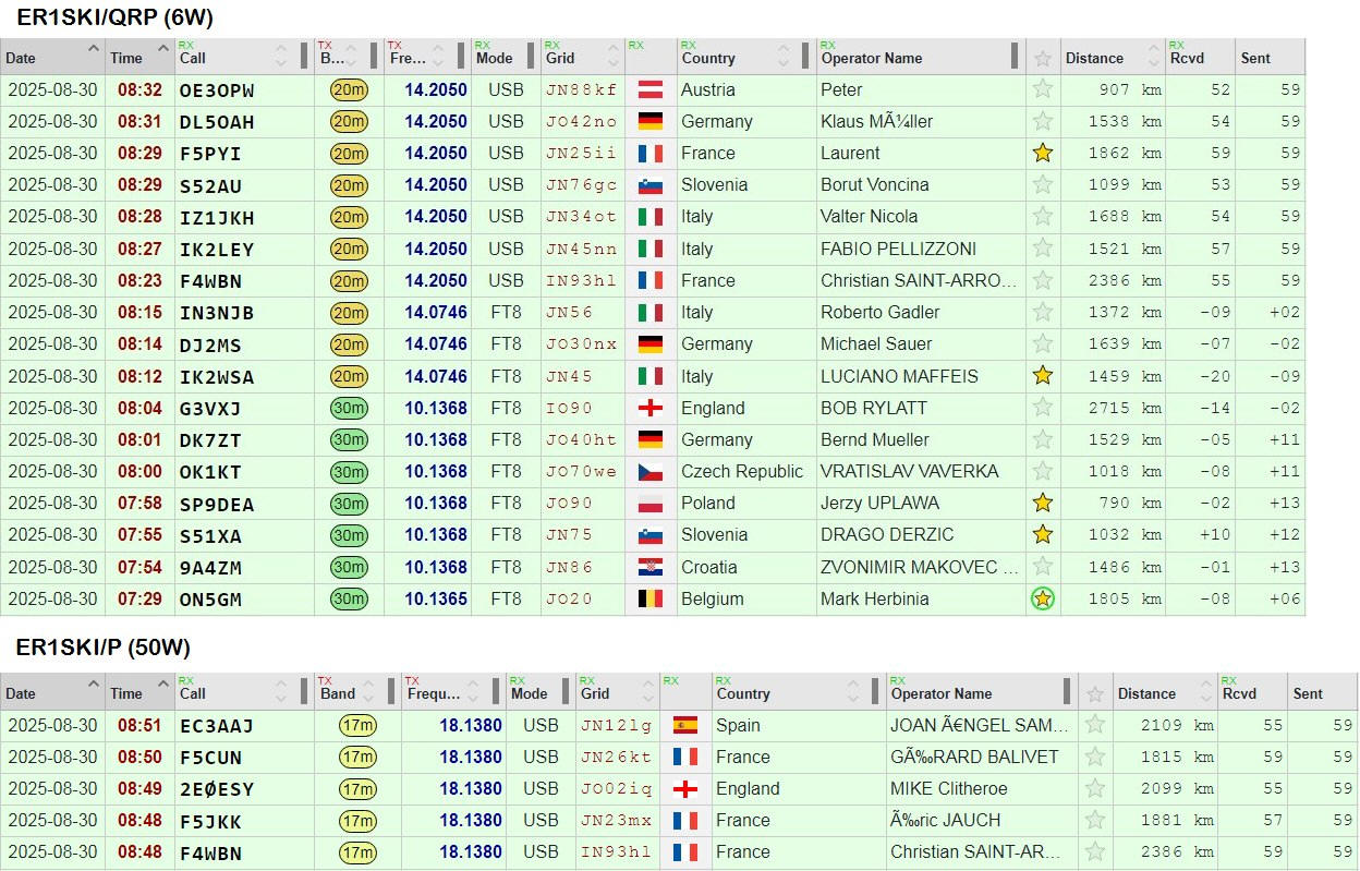 QRP 6W in FT8 and SSB, and also had a S2S session. Ruslan, ER1TX, was at