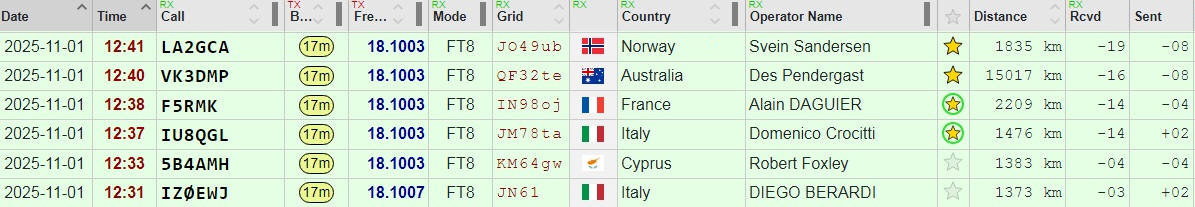 QSO list: